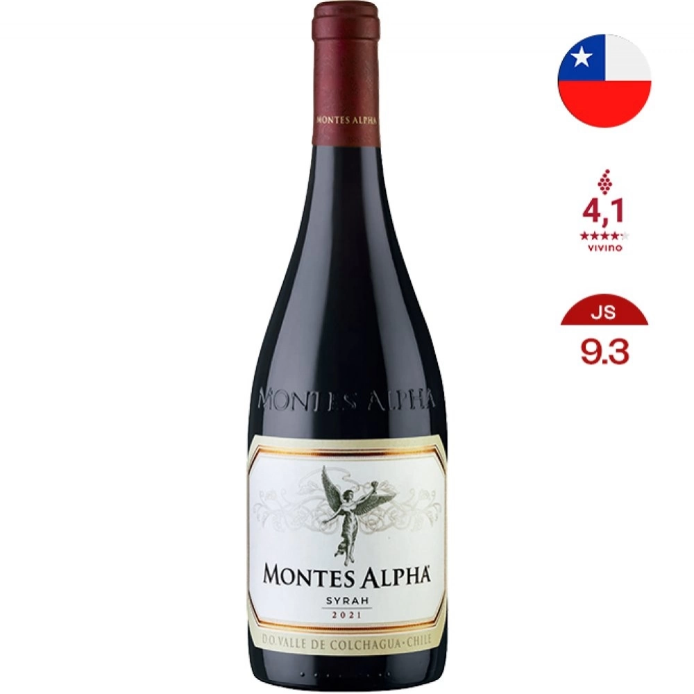 De cor vermelha rubi profundo, o Montes Alpha Syrah apresenta generosos aromas de frutas maduras, como amoras, ameixas pretas, cassis e cerejas.