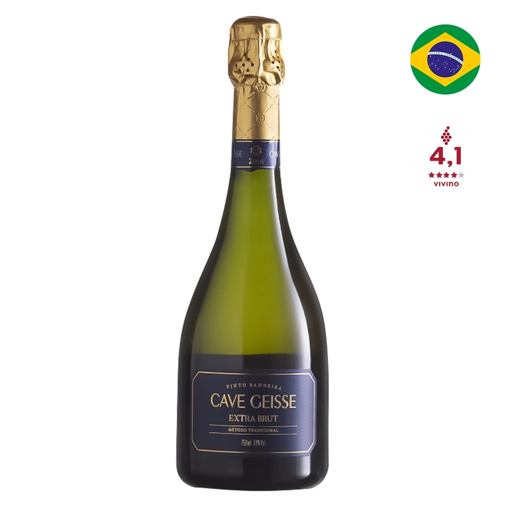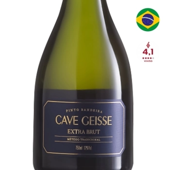 Espumante Cave Geisse Extra Brut é um espumante delicado e ao mesmo tempo intenso e equilibrado. Ficou por 3 anos em maturação, o que lhe dá características marcantes e harmônicas. Complexo e cremoso, apresenta um bom equilíbrio entre acidez e açúcar. Com boa intensidade aromática, lembra frutas, flores brancas com toque de nozes, mel e brioche.
